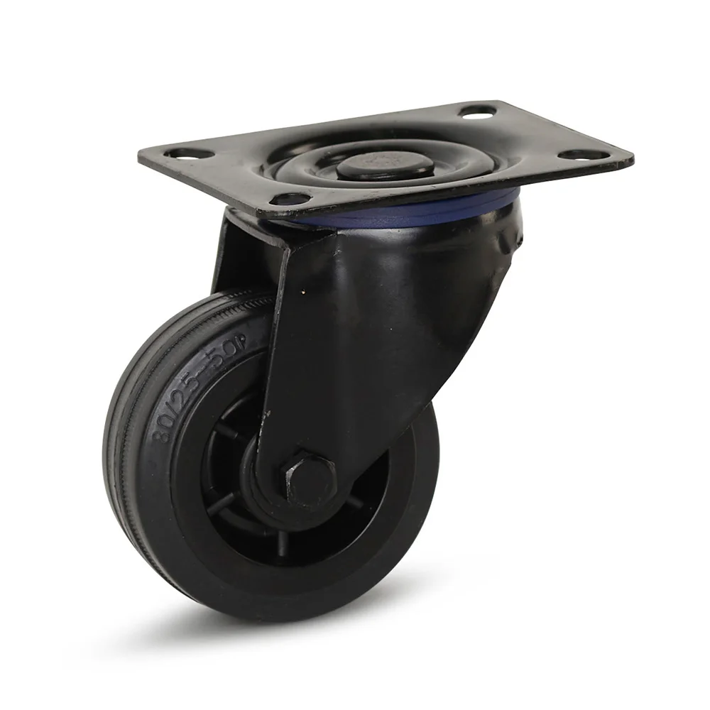 Czarne gumowe kółko obrotowe z płytą górną - 80 mm - 60 kg