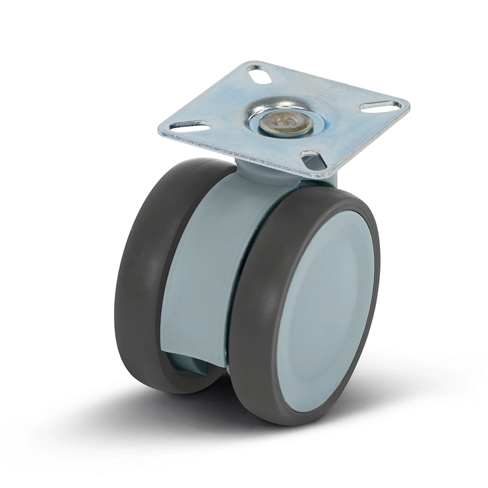 Szare podwójne kółko meblowe z płytą górną - 75 mm - 80 kg