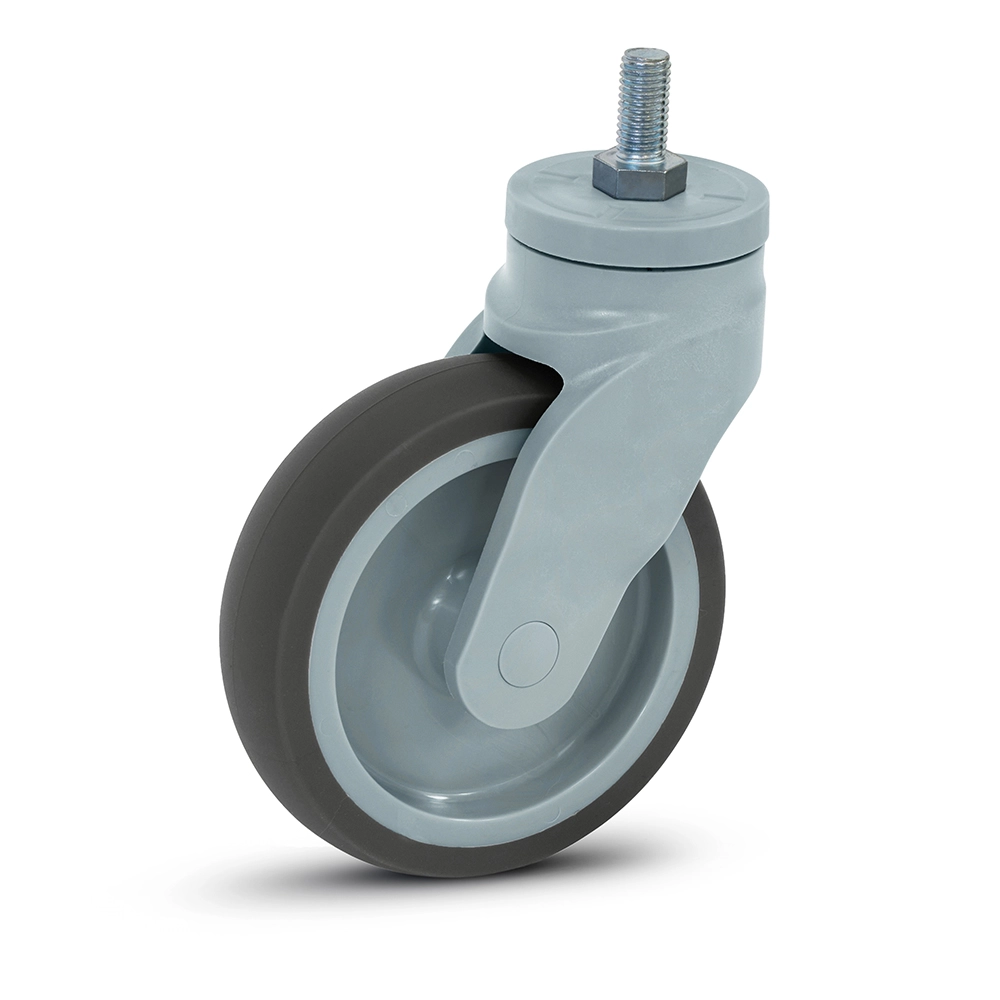 Szare plastikowe kółko obrotowe z gwintem - 125 mm - 100 kg