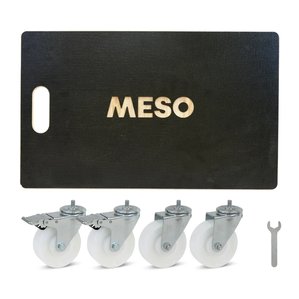 Rolka meblowa z odpornymi na zużycie nylonowymi kółkami, dwoma kółkami obrotowymi z hamulcem, o wymiarach 575 mm x 350 mm i nośności 400 kg.