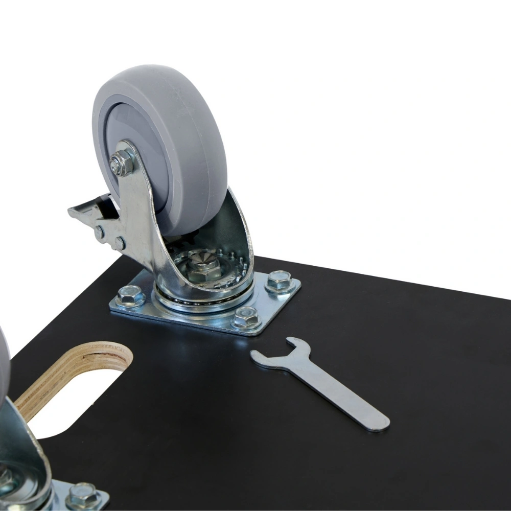 Ta rolka meblowa z gumowymi kółkami i dwoma kółkami skrętnymi z hamulcem łączy komfort z bezpieczeństwem. Model o wymiarach 575 x 350 mm może przenosić obciążenia do 350 kg.