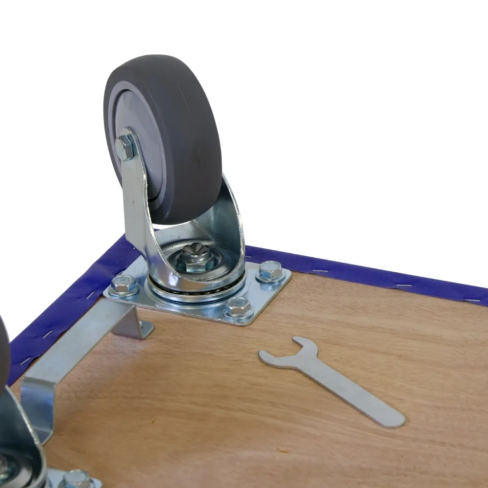 Ta rolka meblowa z kołami TPR i dwoma hamulcami idealnie nadaje się do przenoszenia ciężkich przedmiotów o wadze do 350 kg. Wymiary 600 x 350 mm zapewniają dużą stabilność.
