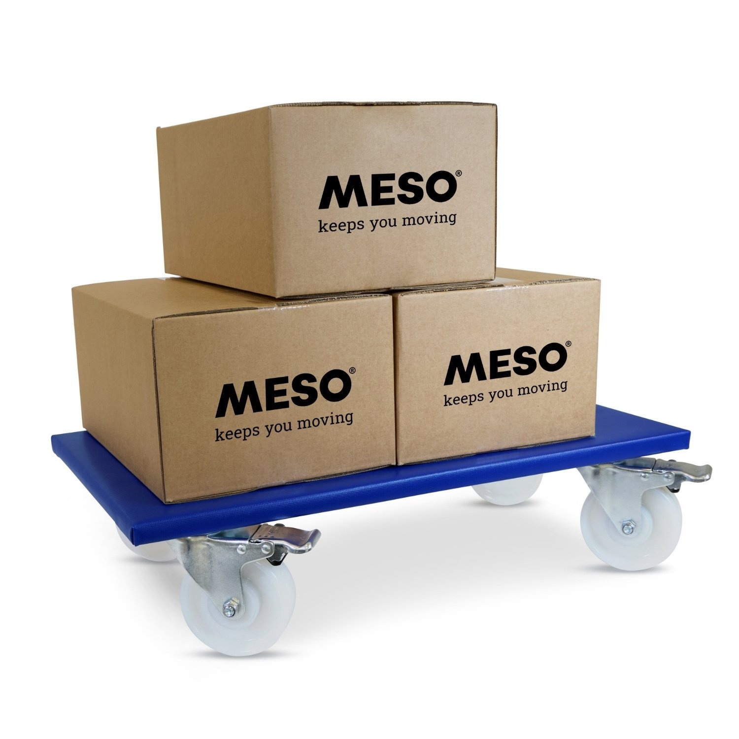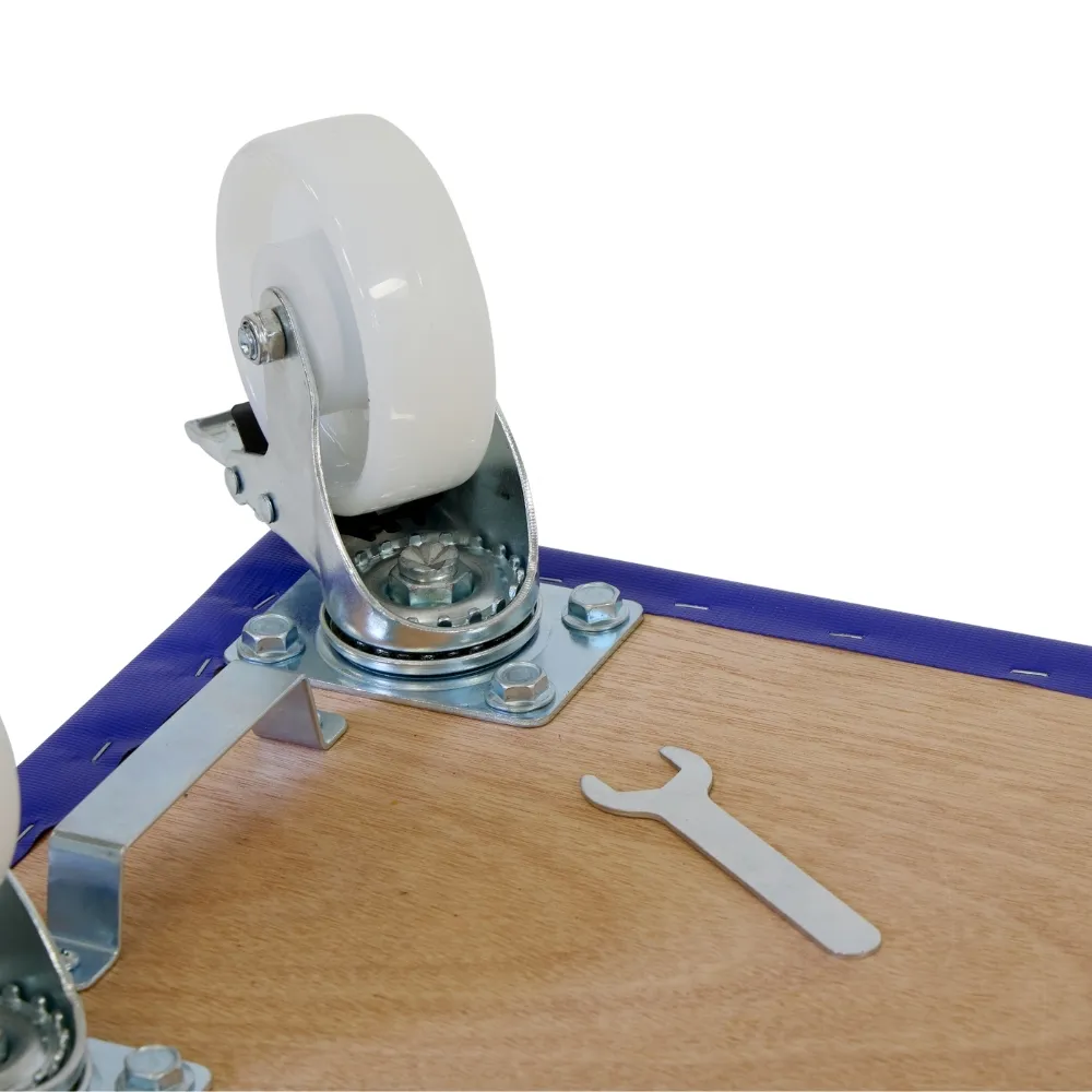 Rolka meblowa z odpornymi na zużycie nylonowymi kółkami, czterema kółkami obrotowymi z hamulcem, 600 mm x 350 mm i nośnością 400 kg.