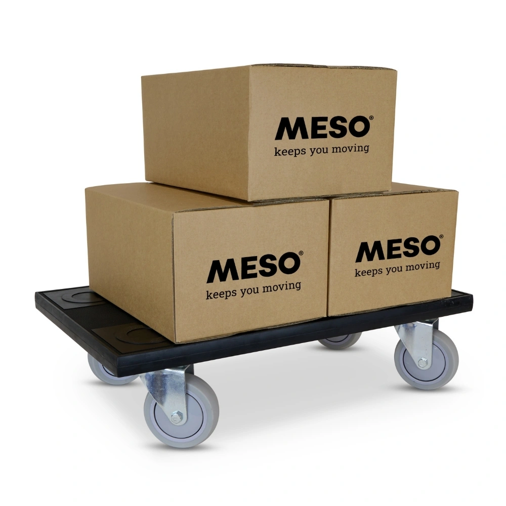 Cztery hamowane koła zapewniają optymalną kontrolę, idealną do użytku w warsztatach, logistyce i przeprowadzkach. Komfort i bezpieczeństwo w jednym.