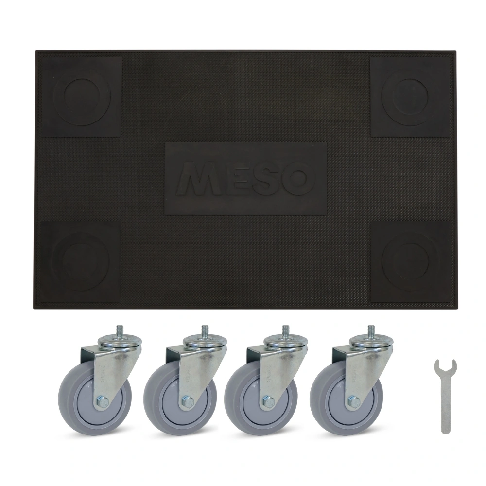Rolka meblowa z gumowymi kołami antywibracyjnymi, obrotowymi kółkami bez hamulca, o wymiarach 580 mm x 350 mm i nośności 350 kg.