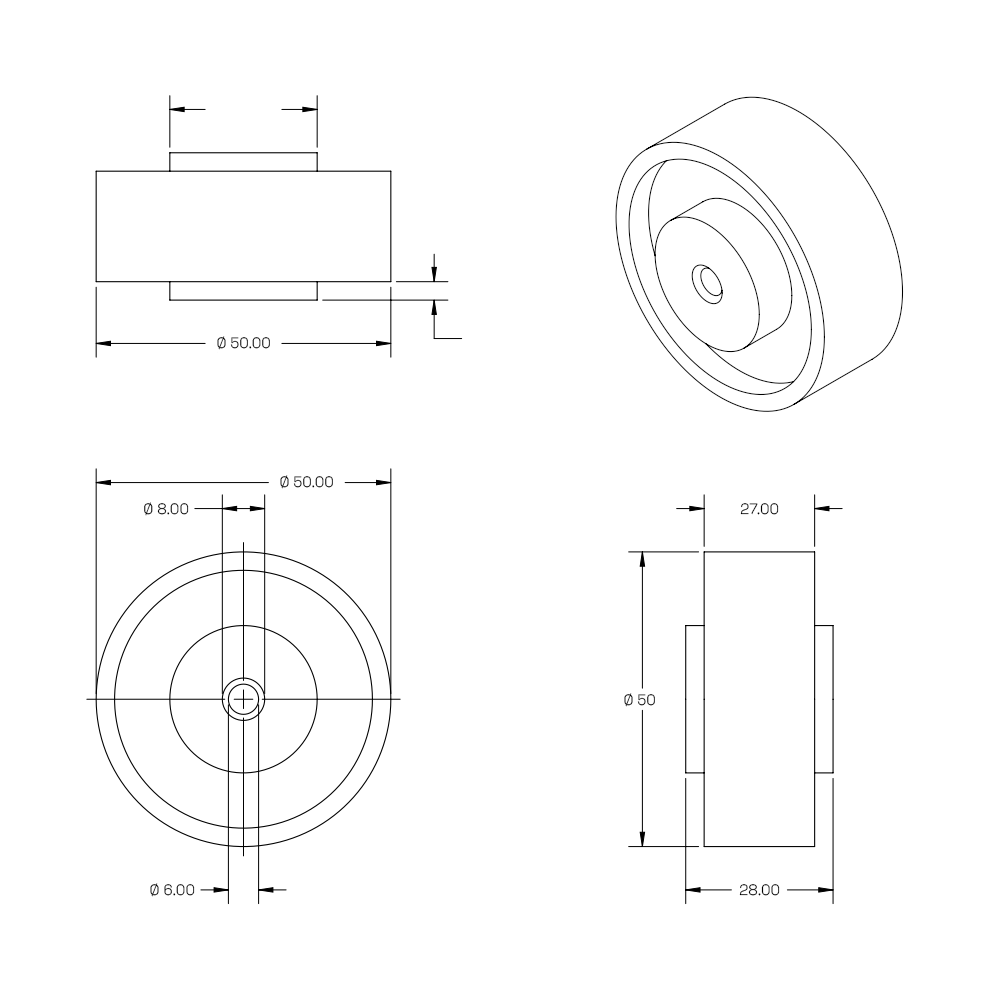 To luźne koło PU o średnicy 50 mm łączy kompaktową budowę z imponującym udźwigiem 120 kg. Czarna opona PU zapewnia cichą i płynną jazdę oraz chroni podłogę przed zarysowaniami i uszkodzeniami. Idealne jako koło zapasowe lub do konstrukcji wewnętrznych wymagających wysokiej jakości kółek.