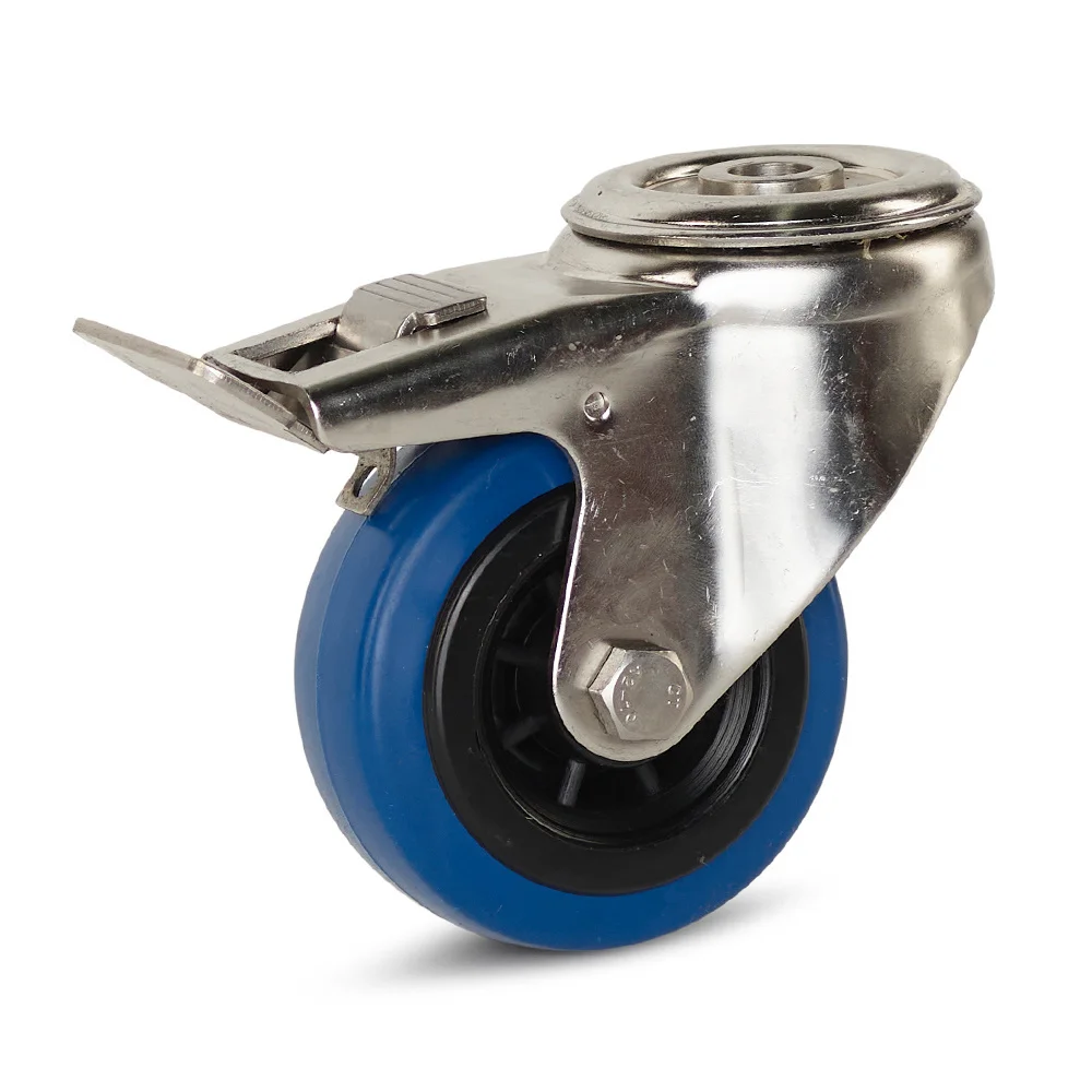 zestaw kołowy skrętny z elastycznej gumy z hamulcem 80 mm, 80 kg, stal nierdzewna