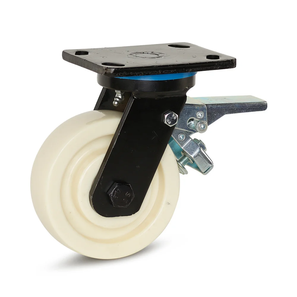 Nylonowe, bardzo wytrzymałe kółko skrętne z hamulcem i płytą górną - 150 mm - 1000 kg