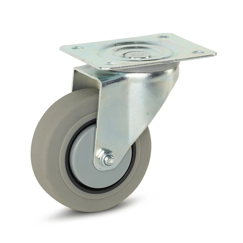 Bardzo miękka guma 65° Shore A, kółko obrotowe z płytą górną, średnica 100 mm, nośność 150 kg.