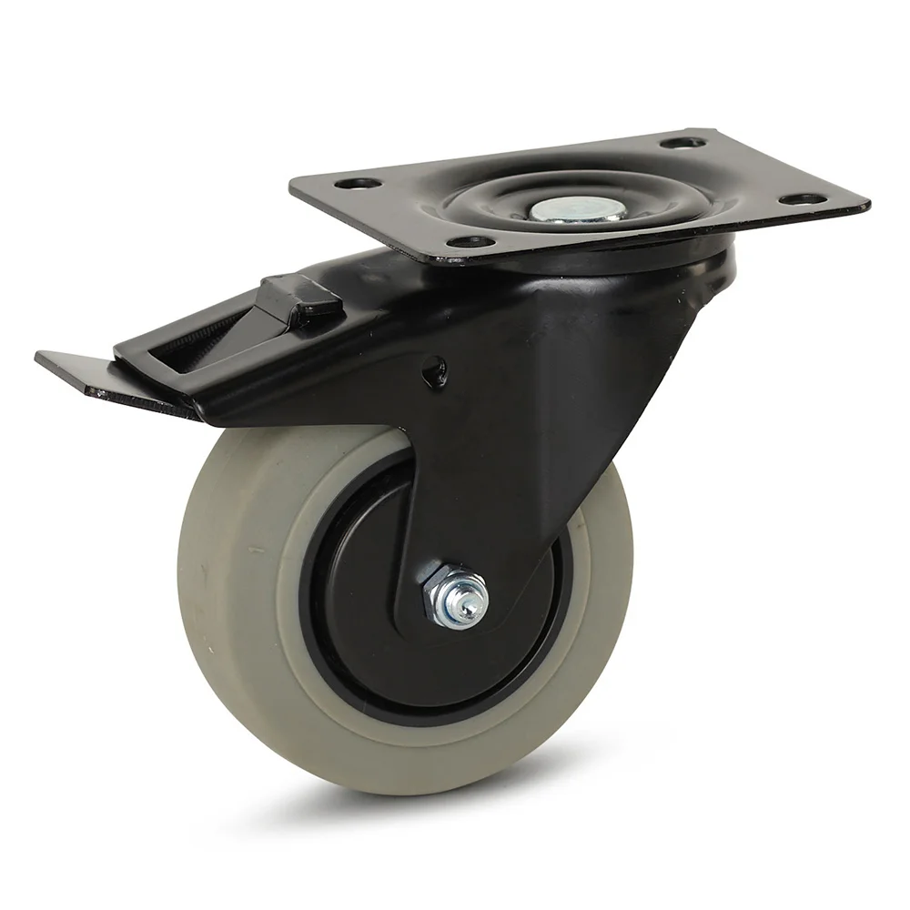 Zestaw kołowy skrętny z szarej gumy z hamulcem 100 mm - GR4-100Z